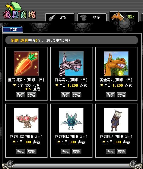 通过道具商城购买宠物是最直接的方法,可以获得无法通过一般途径获得的稀有宠物,如考儿,独角龙,浣熊等。 |
