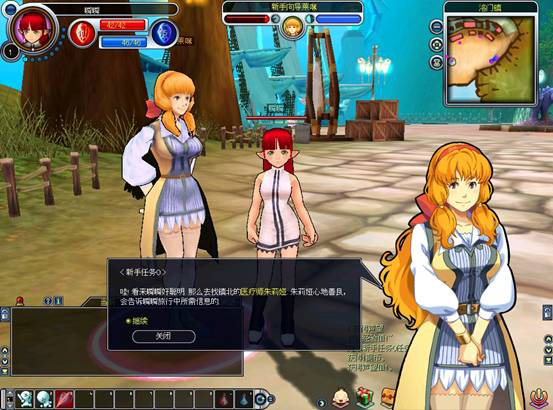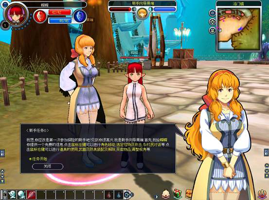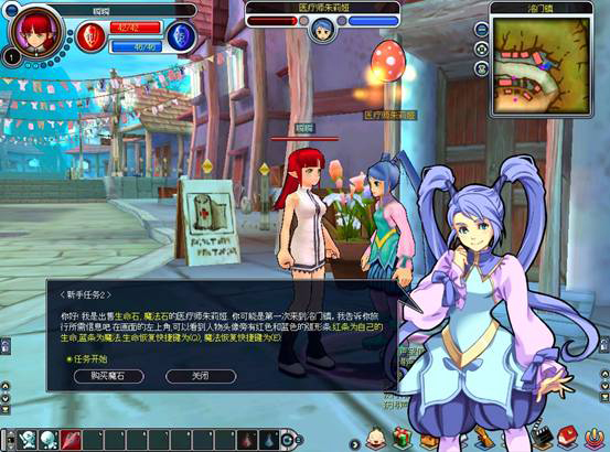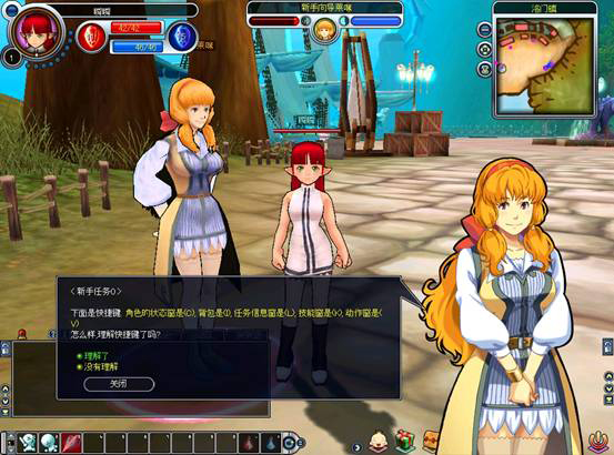 3、在洛门,最早跟玩家打招呼的是新手向导莱咪。她会指导您如何移动、攻击、买卖和使用道具、调整视角等,并熟悉游戏中的各个快捷键。