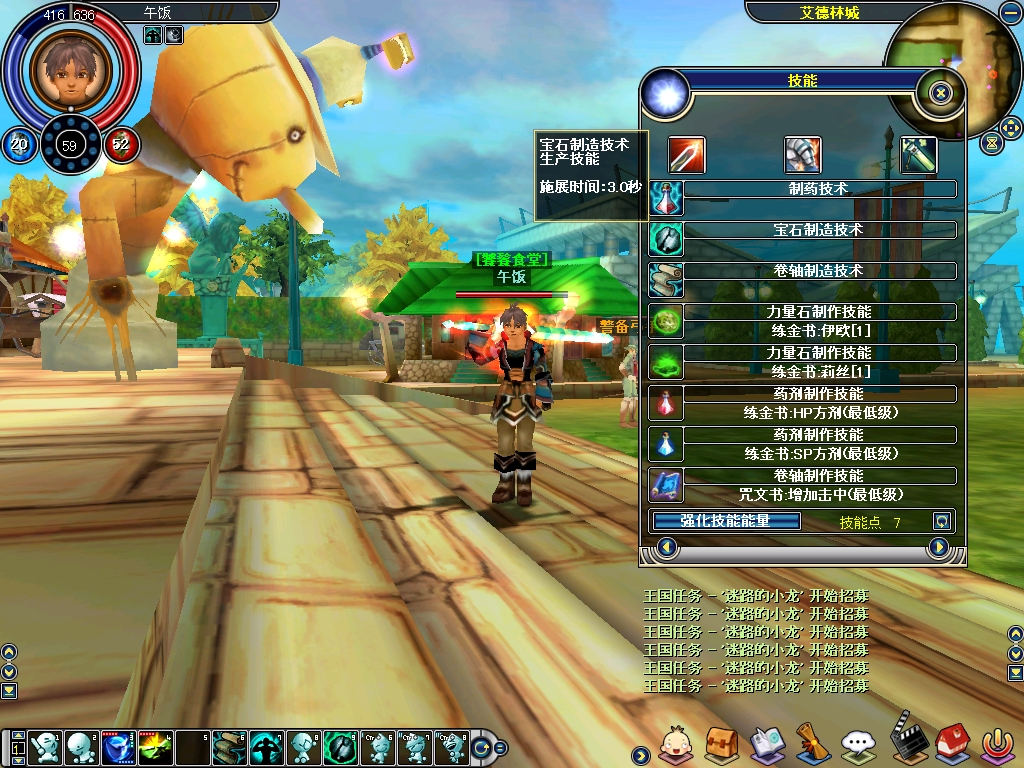 玩家的生产技能分三类:卷轴制作技术、制药技术、宝石制作技术。